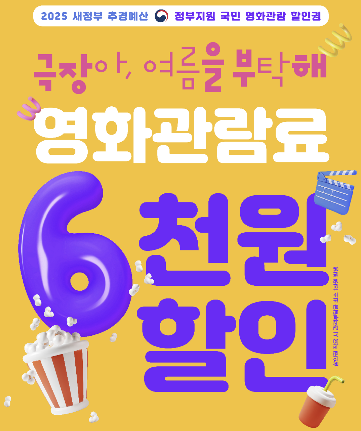 문화체육관광부와 영화진흥위원회가 전국민 대상 6천 원 영화 할인권 450만 장을 쏩니다!