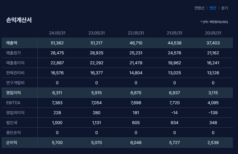 Nike는 꾸준히 50억 달러 이상의 순이익을 기록하며 탄탄한 재무 구조를 유지하고 있습니다.
